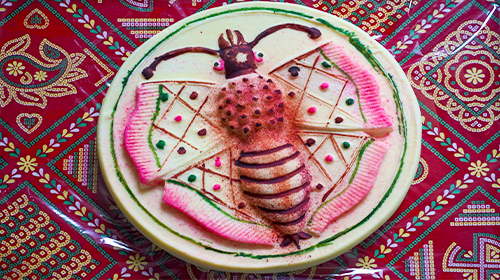 Large butterfly design sweet made from kheer and sugar paste which gets its