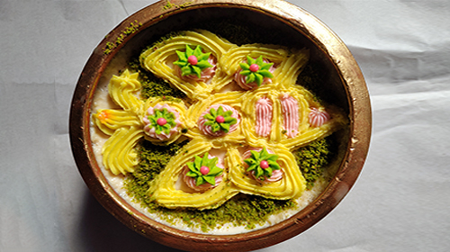 Fish design sweet made from kheer and sugar paste. As fish plays a significant