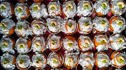 The sweet is made from chana & cream and then dipped in sugar syrup.