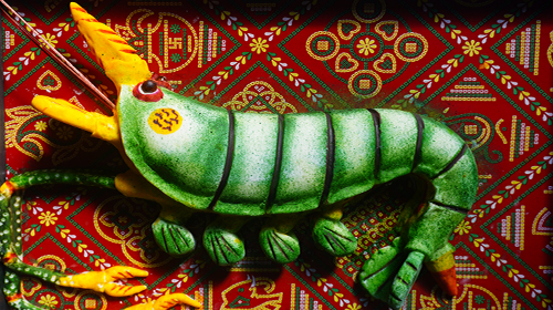 Prawn design sweet made out of Kheer and sugar paste. Cringrimachh sweet is a